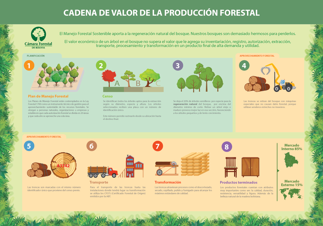 Por la protección de la naturaleza, el sector forestal está firmemente enmarcado en un sistema de sustentabilidad como estrategia de conservación de los bosques que contribuye con beneficios económicos, sociales y ecológicos para toda la población boliviana y mundial.